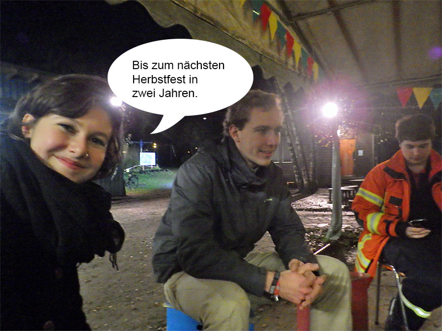 Begleitet das Herbstfest von der Vorbereitung, dem Start des Lampionumzugs nach dem Lichtergottesdienst, dem Anzünden des Herbstfeuers bis zur "Absackrunde" der Mitarbeiterinnen und Mitarbeiter nach dem Fest .